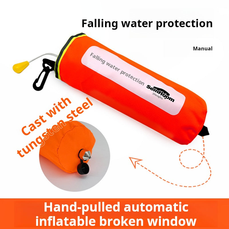 Automatic device + built-in window breaker: Automatic activation device that inflates in 3 seconds upon contact with water, or can be manually activated in advance by pulling the rope. Also includes a built-in window breaker for easier carrying and use.