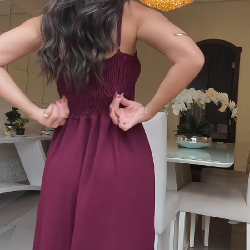 CHIC TWO-PIECE MATCHING SET: This stylish set includes a long flowing halter top with spaghetti straps and matching shorts for a coordinated, effortlessly chic summer look.
