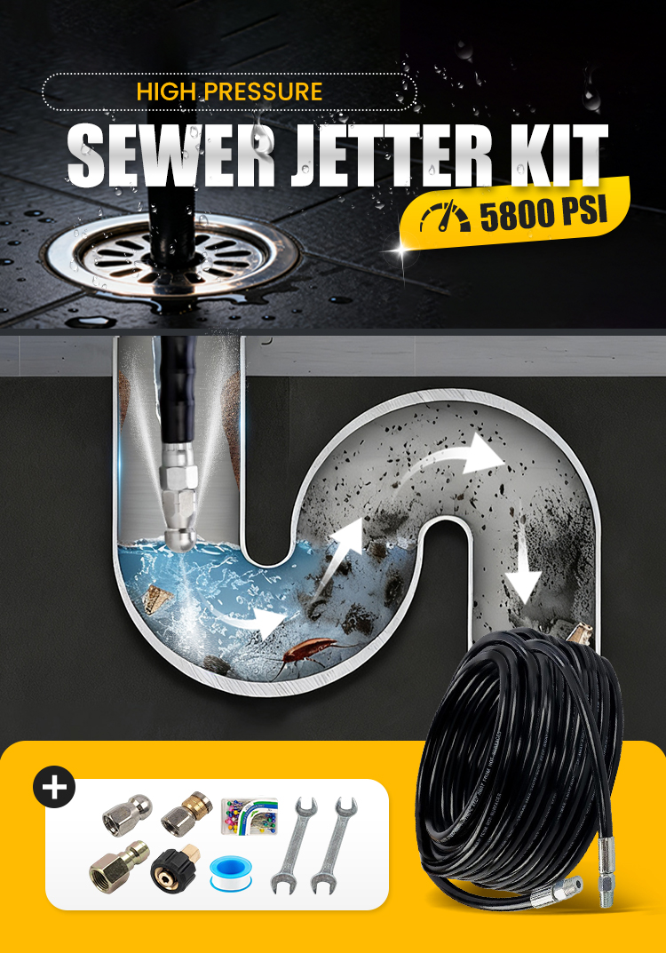 💦 69% OFF INSTANT! 🚿 5800PSI Sewer Jetter Kit - High-Pressure Nozzle & Hose for Clogged Drains/Pipes, Compatible with Most Pressure Washers 🔧📦