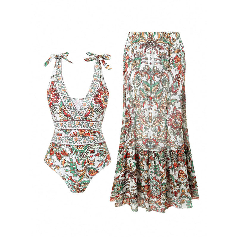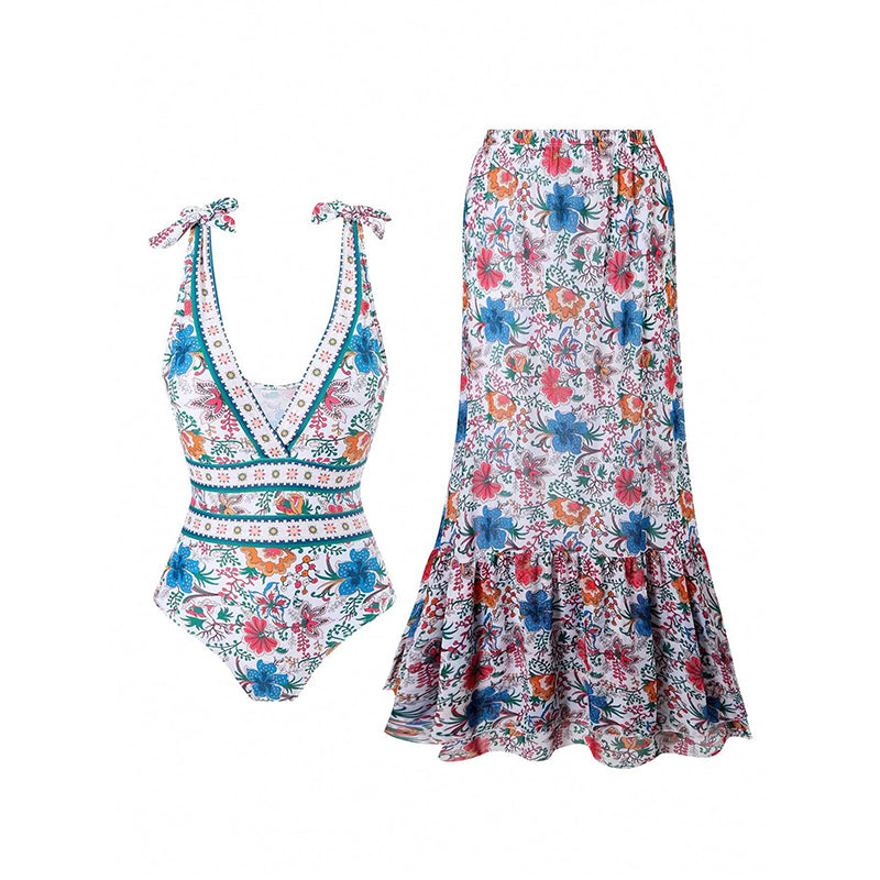 💖2025 Hot Sale💖⏳50% OFF for a limited time 💥Women's Fashion Tie-Shoulder Printed One Piece Swimsuit and Skirt—✈️Free Shipping 📦